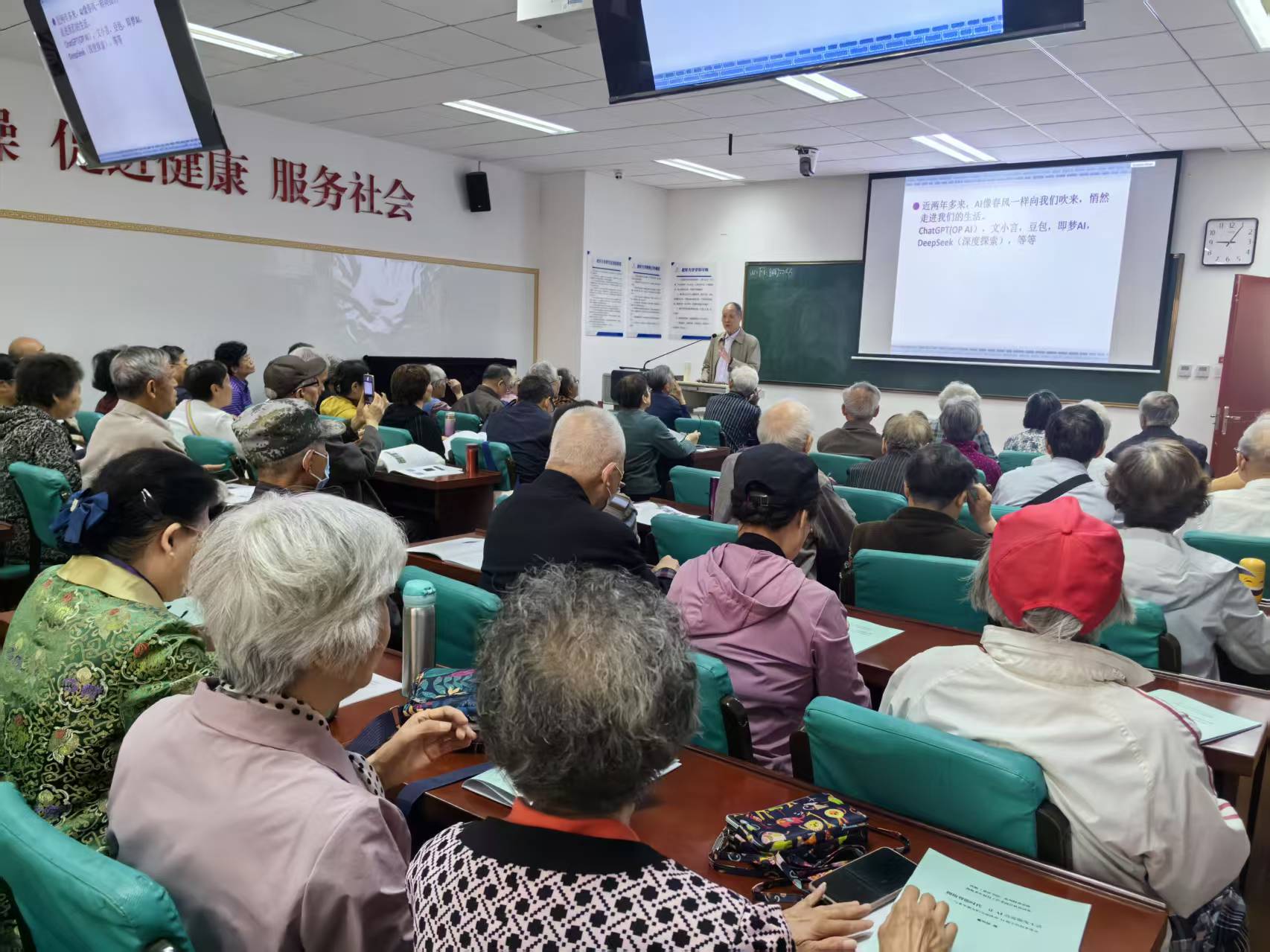 4月23日上午,阳光明媚,春意盎然,学校离退休处在西苑教工活动中心举办了一场别开生面的科普讲座。这场以“拥抱智能时代,让AI点亮银发生活”为主题的讲座,吸引了众多老年朋友的关注,教室里座无虚席,甚至连校外的听众也慕名而来,会议组织者只好临时加座,平时能容纳近百人的教室坐了130多人。讲座的主讲人,是学校退休老教师戴明桢,一位在智能手机和AI助手应用方面颇具影响的“达人”。