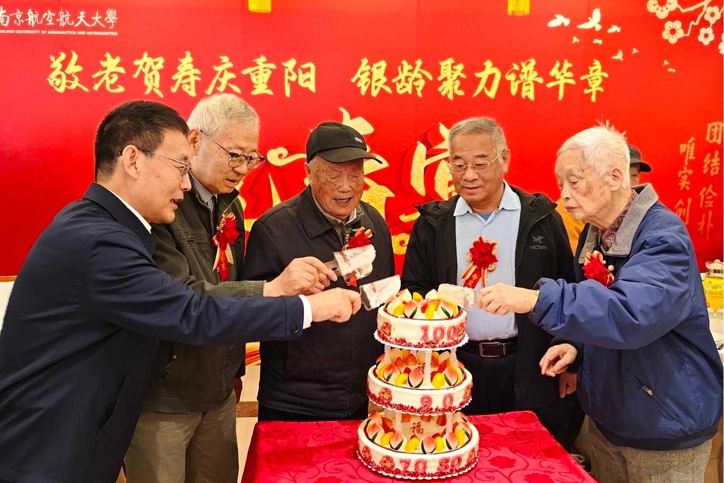 甄良代表学校向老寿星们致以崇高的敬意和节日的祝贺。他表示,学校过往成就的取得和未来2035年发展目标的实现,离不开一代代南航人的薪火相传和老寿星们的倾情奉献,恳请大家一如既往地关心支持学校的发展。在九九重阳节这个敬老爱老的节日举办集体祝寿,已成为学校的优良传统,衷心祝愿老寿星们身体健康、万事如意、寿比南山、阖家幸福。他与70、80、90、100岁寿星代表共切贺寿蛋糕,共品寿面,祈愿福寿绵长。席间,校领导与老寿星们亲切交谈,细致询问身体状况和生活情况。寿星所在单位领导们与老同志一起共同回顾本单位的发展变迁,介绍取得的丰硕成果,活动现场欢声笑语、暖意融融。
