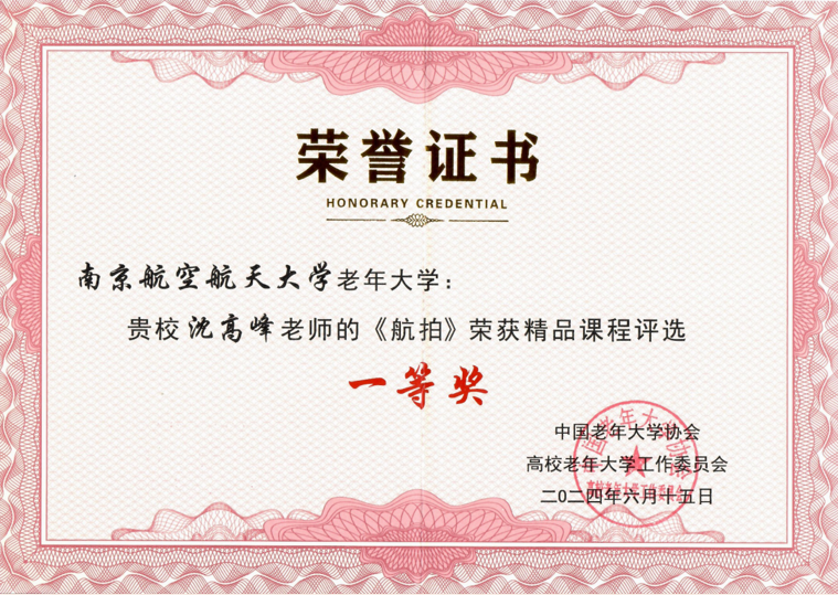 2023年春季,南航老年大学在老年教育领域首创航拍课程,沈高峰老师即肩负起教学重任。凭借扎实的无人机专业功底与丰富的实操经验,他耐心指导老年学员从零开始,逐步掌握飞行操控与航拍技法,助力一批批“银发学员”实现从新手到航拍达人的精彩蜕变。2024年,沈老师主讲的无人机航拍课程获中国老年大学协会高校老年大学系统“精品课程”一等奖。